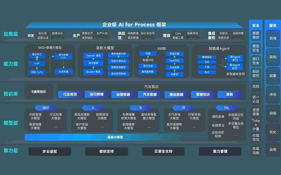 端到端的一站式AI工作空间深度融合了从企业战略规划到日常经营的全流程业务板块,,,定向解决车企内部领域多、、部门多、、、、链条长、、、场景碎片化等难题,,,支持车企快速构建以AI为核心的生产力写作体系,,实现任务执行与AI能力的无缝集成与交互
